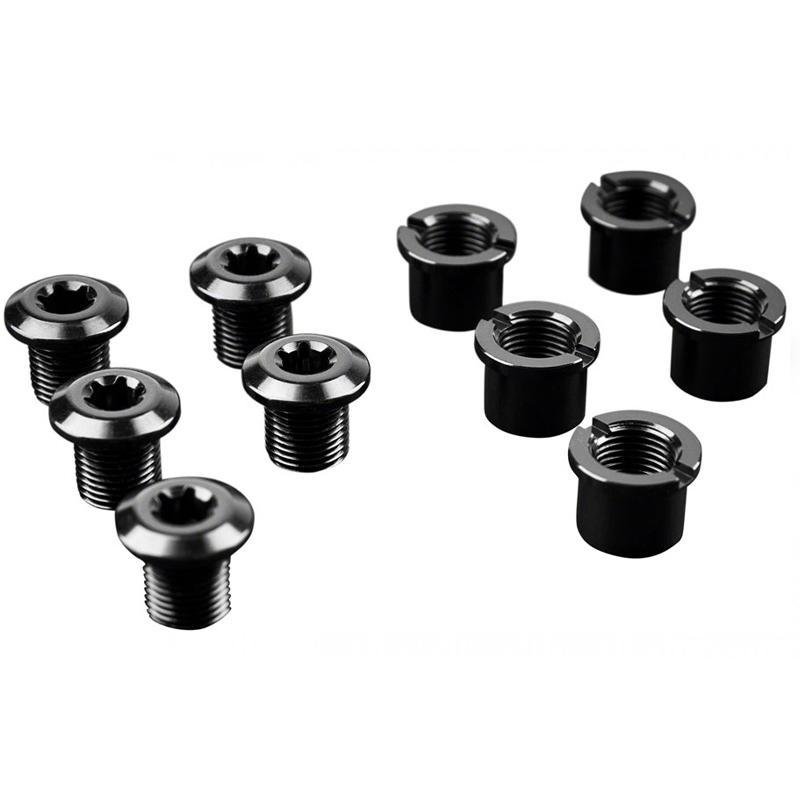 Tornillos de plato simple y doble para montar los platos Absoluteblack en las bielas. Los tornillos tienen una interfaz torx T30 para una mayor fiabilidad.